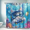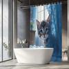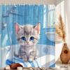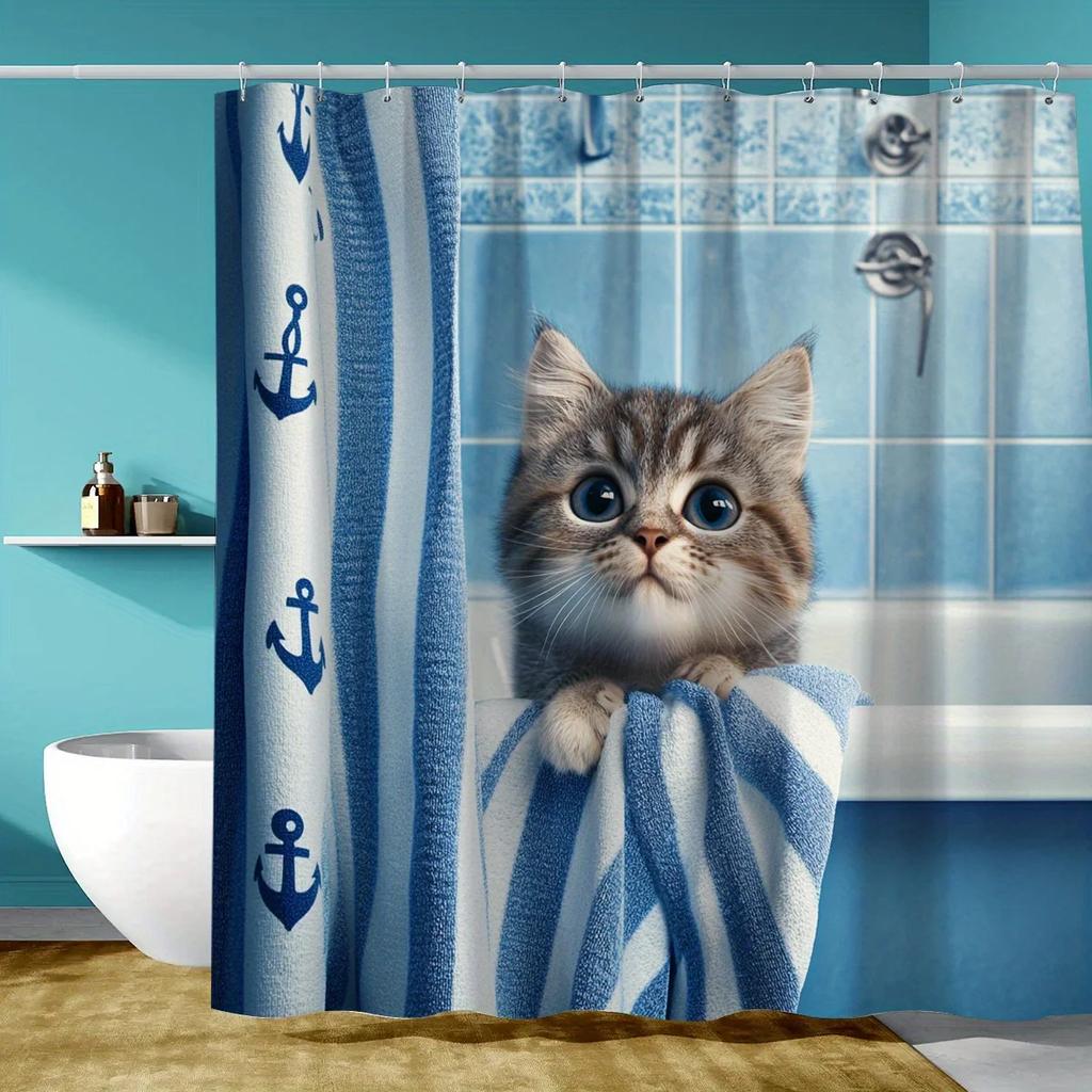 Adorable Kitten in Nautical Shower Curtain - Blue & White Anchor Design for Cozy Bathroom Décor, Waterproof & Easy Care