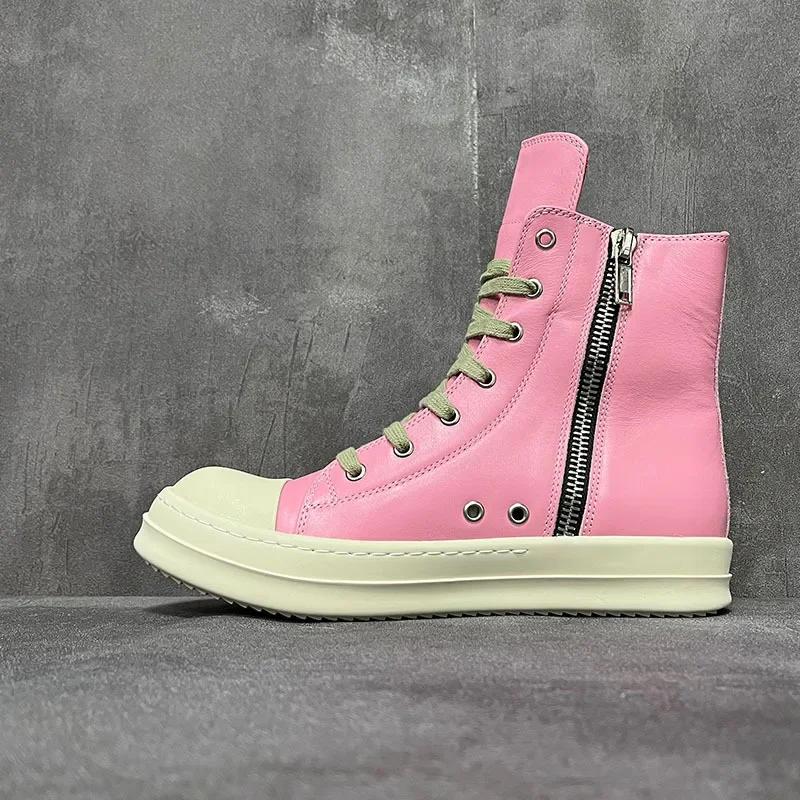 2025 High Top Shoes Men Casual Platform Women Sneakers Leather Luxury Trainers Lace Up Zip Autumn Pink Red Orange Boots