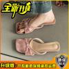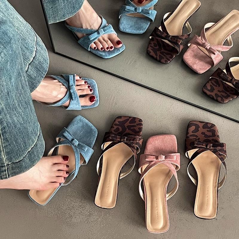 Minimalist bow cross belt open-toed low-heeled slippers summer wear thick-heeled shoes versatile women's sandals
