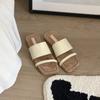 Sheepskin~ Square head retro one-word open-toed flat-bottomed slippers women's summer wear leather versatile beach cool slippers