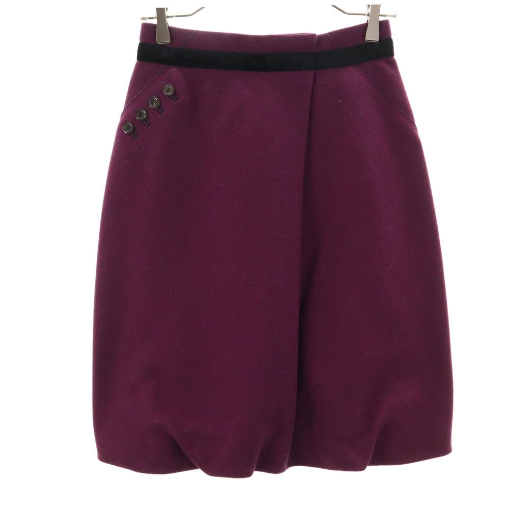LOUIS VUITTON French wool Midi Skirt 36 Purple Back zip Women Used