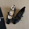 Lambskin~ Single shoes women's flat bow ballet shoes shallow mouth evening shoes black retro Mary Jane shoes