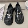Coarse heel metal buckle single shoes women's new platform Mary Jane lace-up leather shoes