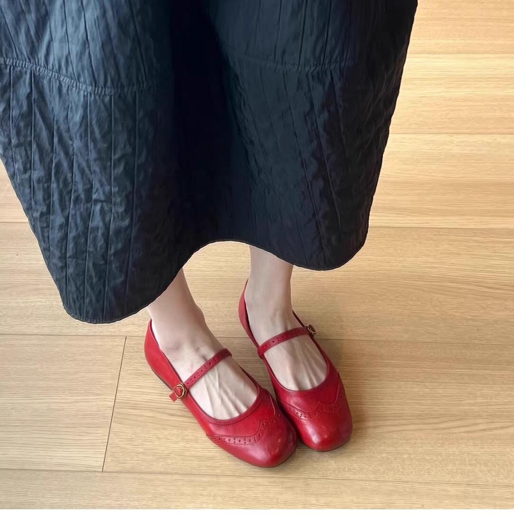 Women's high-heeled single shoes spring and summer new fashion ballet shoes retro versatile engraved shallow mouth Mary Jane shoes