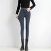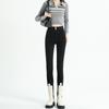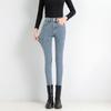 Korejská verze vysokých a malých džínů pro dámské jaro a podzim s vysokým pasem a tenkých, slim-fit elastických tužkových džínů s dvojitou přezkou