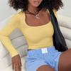 Ladies Spring Autumn Long Sleeve Sexy Deep Cut Solid Color Slim Fit Pullover Bare Midriff T Shirt Top