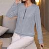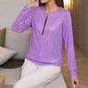 Dámské módní a ležérní volné tričko s dlouhým rukávem a kulatým výstřihem, jednobarevné se sekviny
