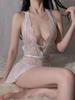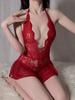 Red Sexy Christmas Lingerie Women Lace Hollow Bodysuit Erotic Costumes Teddy Nightdress Outfit Deep V Exotic Porn Underwear Set