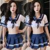 Cosplay Sexy Cute Schoolgirl Role Play Uniform Womens Seduction Crotchless Bra Set Passionate Open Style Pleated Skirt Set