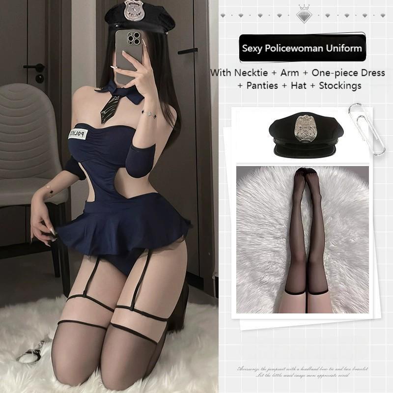 Anime Cosplay Policewoman Officer Passion Sexy Lingerie Uniform Roleplay Erotic Outfit Carnival Halloween Fancy Party Dress