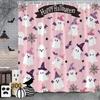 Pink Cute Halloween Shower Curtain Ghost Pumpkin Bat Skull Polyester Fabric Kids Shower Curtain Girls Bathroom Decor Strap Hooks
