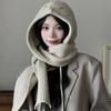 Autumn Winter Knitted Hat with Integrated Scarf Hooded Wool Cap Warm Ear Protection Shawl