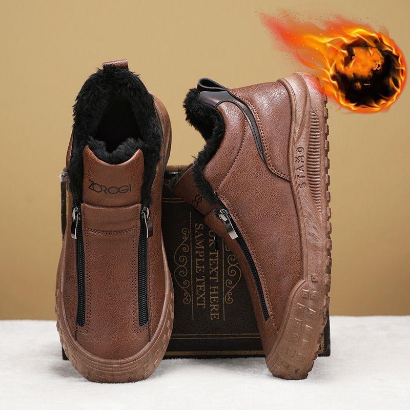 Winter Men's Shoes Plus Velvet Thickened Warm Casual Sports Shoes One Pedal Double Zipper Men's Big Cotton Shoes