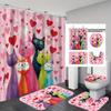 4Pcs Bathroom Shower Curtain Set Funny Cat Pattern Bathroom Curtain With 12 Hooks Non Slip Rugs Toilet Cover Mat Bathroom Partition
