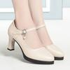 Etiquette high-heeled leather shoes soft leather platform single shoes thick-heeled catwalk shoes waterproof table one-word buckle belt women's shoes