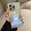 Square Back Tube Protection Clear Case For iPhone 12 13 16 ProMax 11 15 Plus 14 Pro Max Anti-Oxygen,Blue Bear Pattern Casing