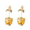 Big Alloy Flower Long Pendant Drop Earrings for Women Classic Gold Color Exaggerated Style Vintage Earrings Charming Zircon