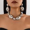 Salircon Bohemský Vintage měděná barva Oválný kovový přívěsek Náhrdelník Náramek Set Dámský Klasický Černý provázkový řetízek Choker Zirkon