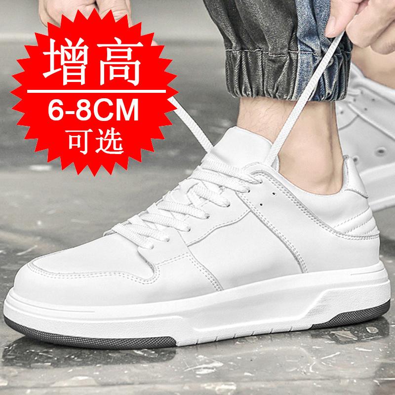 Autumn cowhide invisible heightening shoes men's 8CM breathable British casual sports board shoes 6 inner heightening men's shoes white shoes