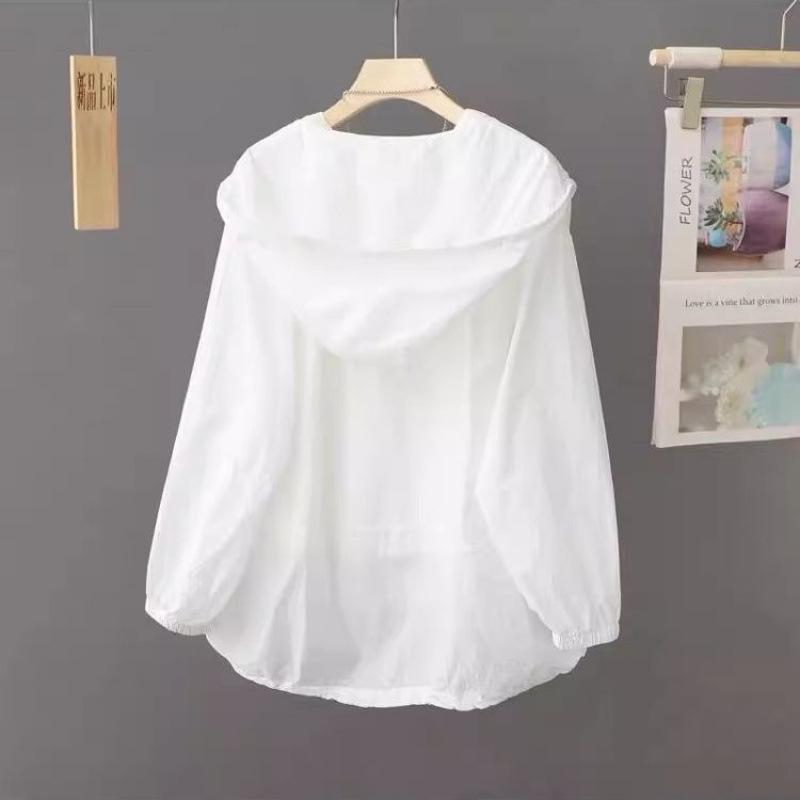 2025 White Lightweight Hooded Sun Protection Jacket – Breathable, Casual, Loose Fit, UV Resistant for Summer Outdoors