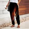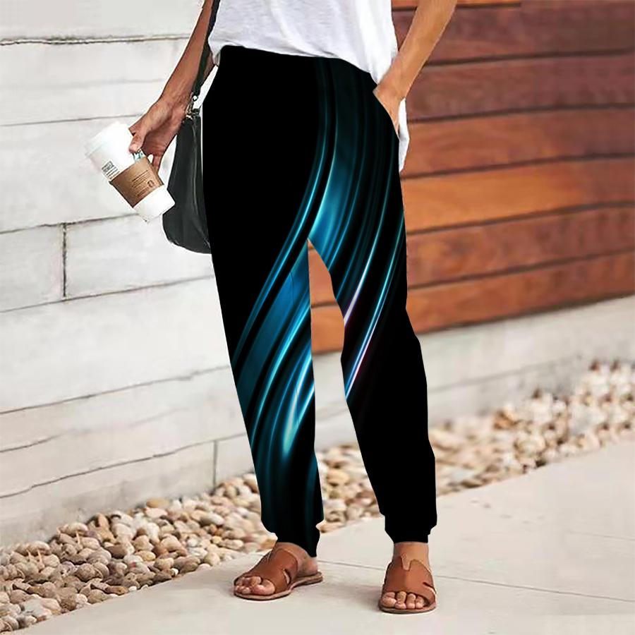 Women Silk Printing Pants Lace Up Elastic Waist Loose Trousers Casual Long Pants Trousers with Pockets
