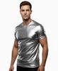 White With Black Stripes Handmade Leather Men's T-Shirt Stylish Casual Genuine Lambskin