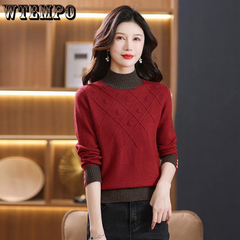 Volný svetr Dámský pletený svetr s polopropínacím límcem Zesílený svetr Dámský stylový pletený svetr Hřejivý top