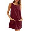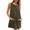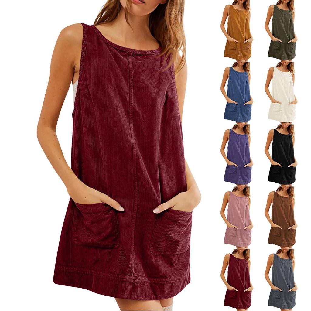 Women's Fashion Corduroy Solid Color Round Neck A Line Vest Dress Pinafore With Pockets