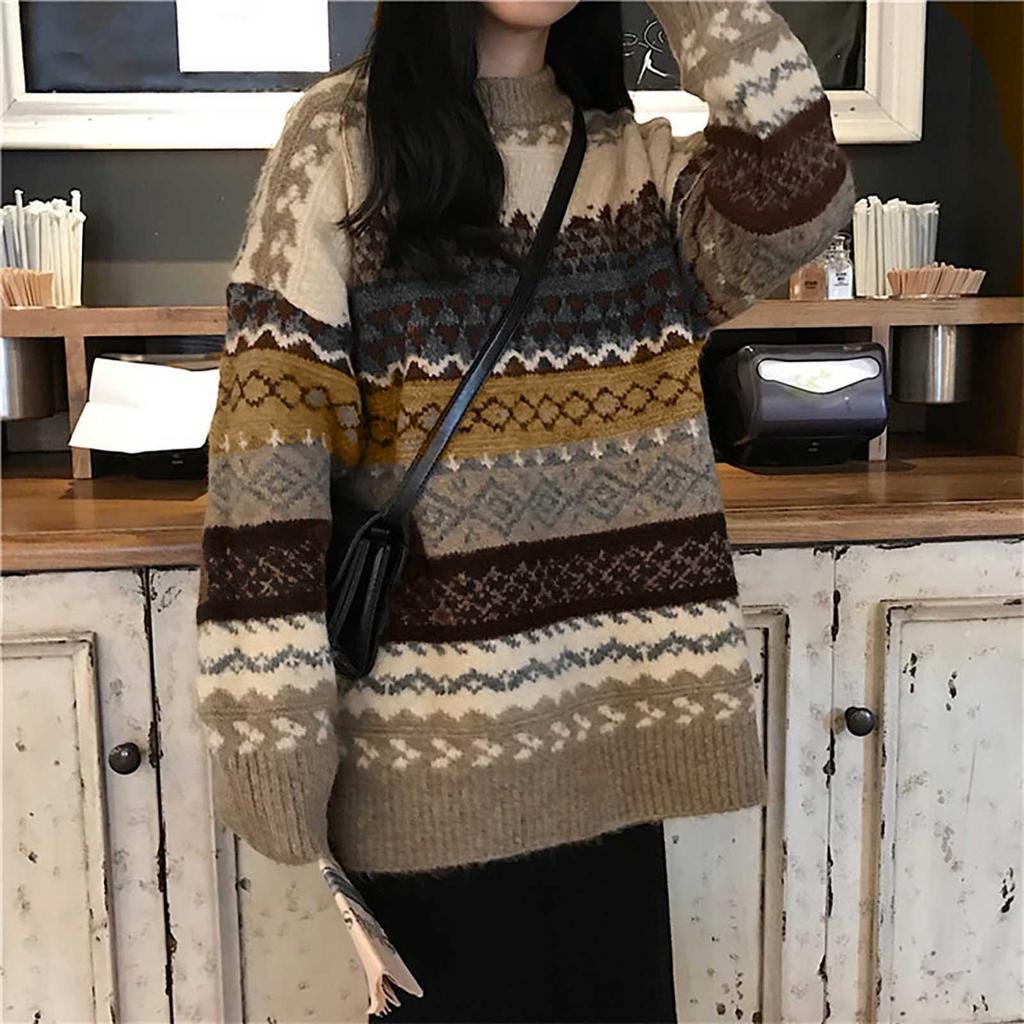 Dámský módní svetr s kulatým výstřihem a dlouhým rukávem s potiskem
