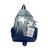 Gradientní džínový hvězdný batoh ve vintage stylu, unisex školní taška pro teenagery a vysokoškoláky, lehký prodyšný cestovní denní batoh