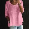 Dámské módní jednobarevné top s kulatým výstřihem a tříčtvrtečním rukávem, volný kulatý výstřih
