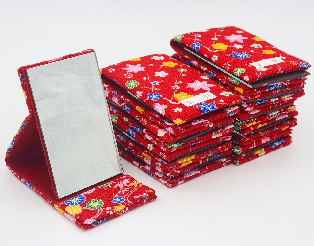 Japanese Traditional Folk Crafts Red Bifold Standing Mirror of Souvenir (Set 10)