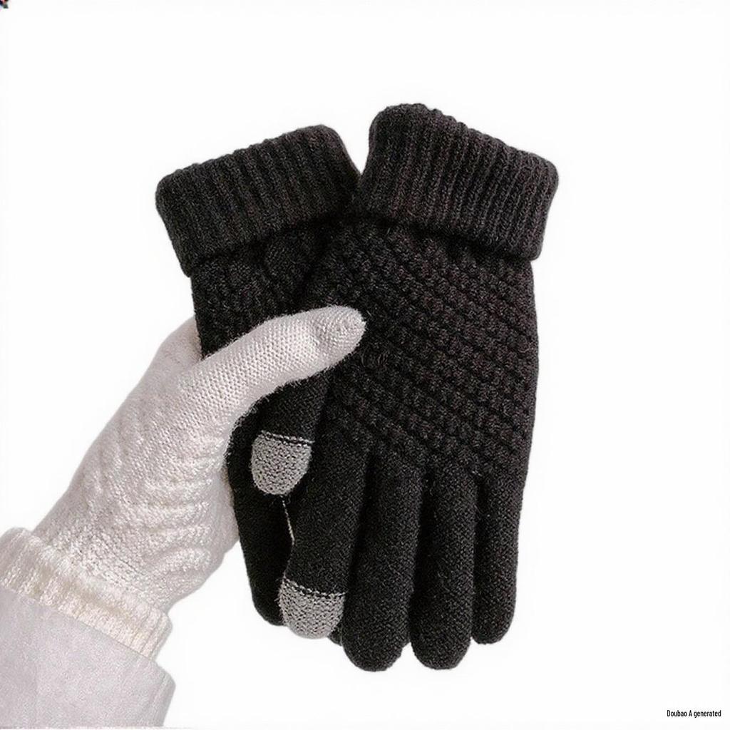Dámské zimní cyklistické pletené rukavice s dotykovým displejem - Hřejivé, s fleecovou podšívkou, dvouvrstvé s ananasovým designem