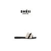 Sheepskin version of the new niche lock leather one-word slippers women's summer wear flat leather sandals women's shoes