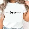 Letter Cartoon Love and Heart Graphic Print T-shirt Short Sleeve Crew Neck Top Tee Women's Clothing