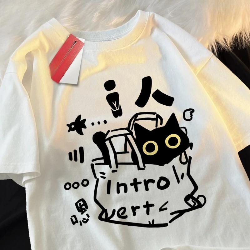 Tops Introverted Cat Fun T-shirt T-shirt Clothing Casual Soft Short Sleeve Summer Street Family T-shirt Women Clothing Y2K Top