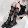 Dámské letní tenké prodyšné krajkové baletní ponožky s mašlí z pásky ke lýtku