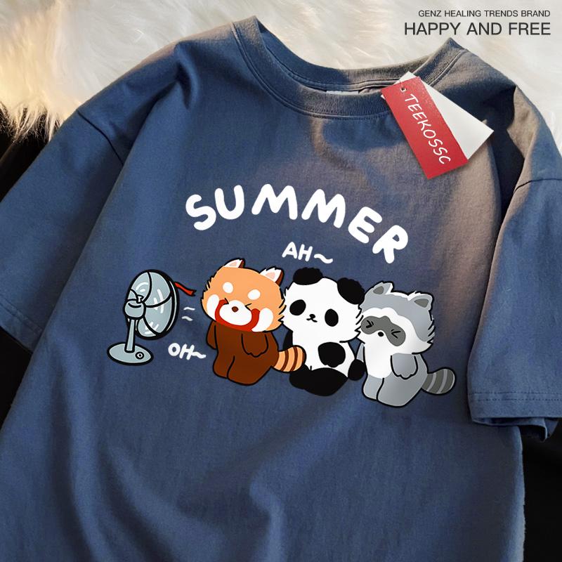 3 Raccoons Blowing Fans Print T-Shirt Street Breathable Tshirt Fashion Loose Tees Cotton Oversized Street Clothes Men Women