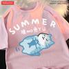 Fishing Little Cat Beautiful Short Fun Unisex Style Summer Short Sleeved T-shirt Men Women Cat Blue Floating Trendy Cotton Tee