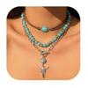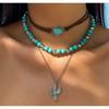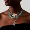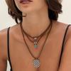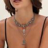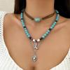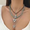 Evropský a americký retro imitace tyrkysu hlava krávy klíční kost exotický etnický styl kaktus kovbojský klobouk vrstvený s korálkovým náhrdelníkem