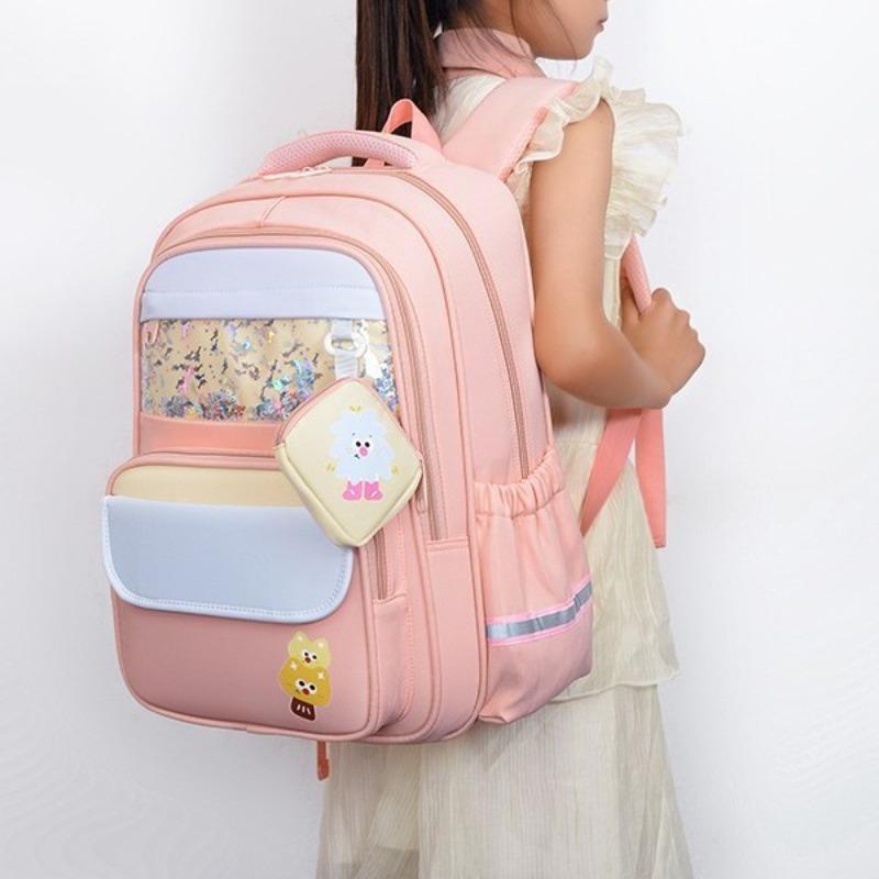 The new schoolbag is high-value, fresh and sweet, contrasting color splicing backpack, large-capacity backpack for kindergarten grade 1-3 students