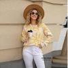 Podzim a zima 2025 Nový módní svetr s kulatým výstřihem, květinovým kontrastem, volným pulovrem a potiskem, pletený svetr
