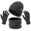 Hat Scarf Gloves Three-piece Set for Men and Women Color Combination Plus Velvet Warm Wool Hat Winter Cold Protection Set