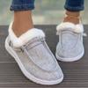 Winter new large size velvet warm women's shoes flat bottom round head one pedal casual shoes women