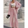 Stylová jarní kolekce dámského kardiganu s dlouhým rukávem ve velkých velikostech, dvoudílný ležérní jednobarevný set