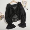 Volné halenky Dámské Volánkové V výstřih Letní Tenké Dlouhý rukáv Sladká dívka Streetwear