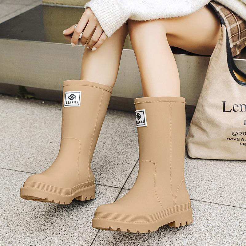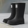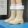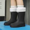 Medium tube rain shoes women's non-slip water shoes fashion water boots thick-soled rain boots fleece work rubber shoes