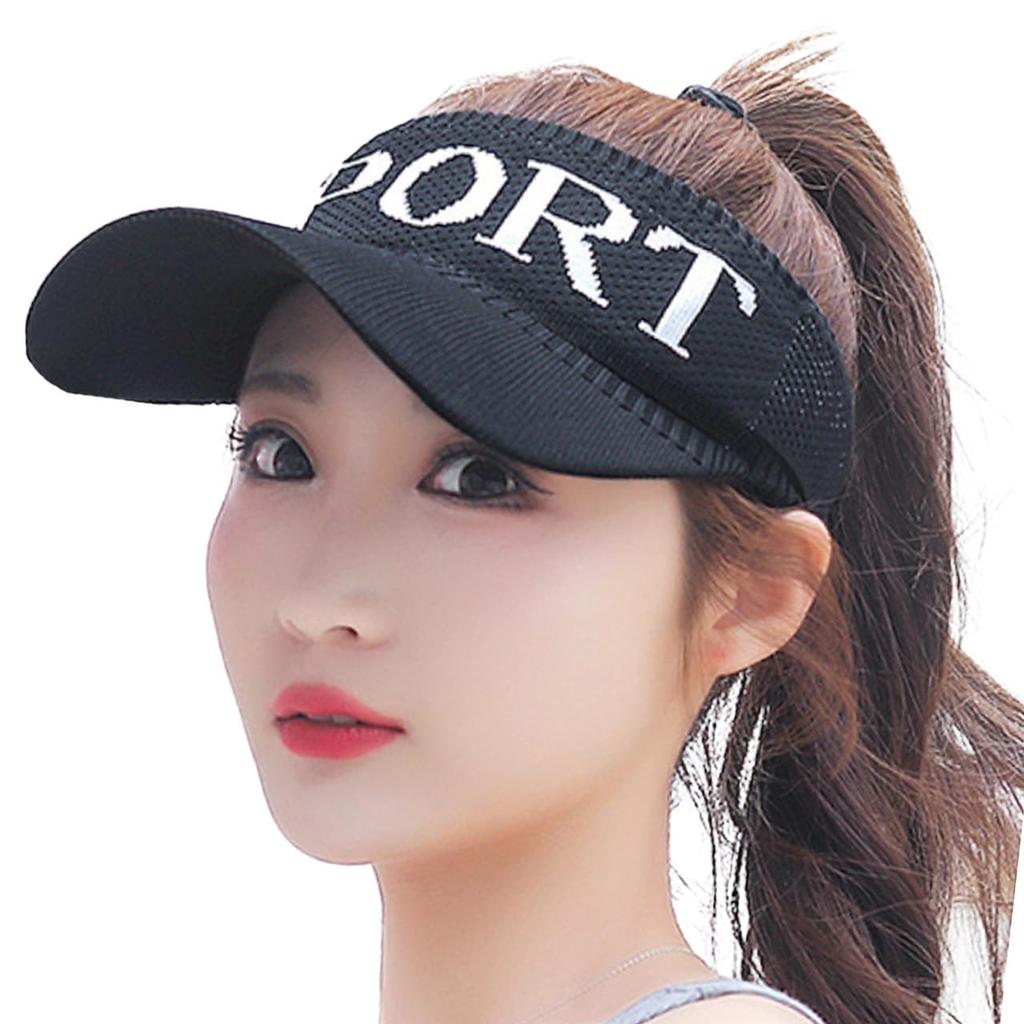 Plain Mesh Visor Cap Hat for CA810 [White Fang] Outdoors, Walking, Fishing, Golf, Women's (Black)