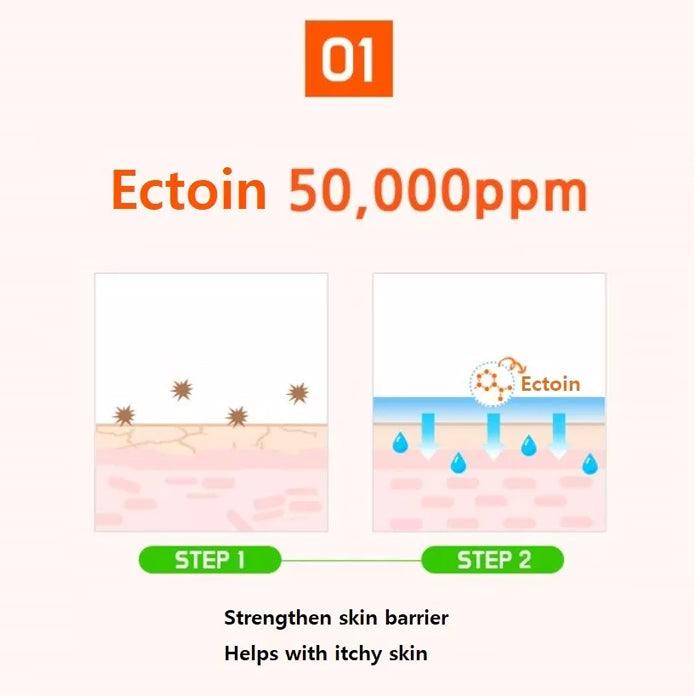 Survives in dry and extreme desert environments, and applies 50,000 ppm of ectoine with strong self-protection ability! Helps manage barrier, helps soothe atopic skin, and itchy and hot skin.