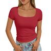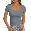Dámská móda, ležérní štíhlé tričko s krátkým rukávem a čtvercovým výstřihem dole, svrchní oblečení